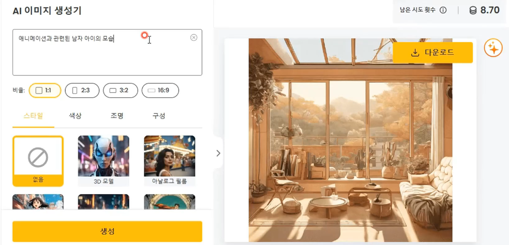 AI가 자동으로 생성해 주는 시대가 열리며, 전문 디자이너가 아니어도 누구나 손쉽게 디자인 결과물을 만들 수 있게 되었습니다.